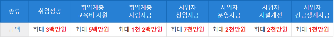 | 3백만원 이내 | 연 4.5% | 최대 3년 | 원(리)금균등분할상환 |