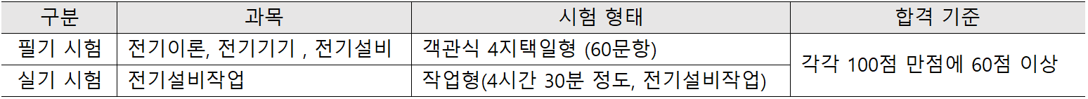 전기기능사 자격증은 학력이나 경력에 제한 없이 누구나 응시할 수 있는 자격증입니다. 자격증 취득을 위해서는 필기시험과 실기시험을 모두 합격해야 합니다. 필기시험은 객관식 4지 택일형으로, 전기이론, 전기기기, 전기설비 3과목으로 구성되어 있습니다. 실기시험은 전기설비 작업형으로, 전기설비 배관 및 배선 공사, 시퀀스 제어회로를 완성하는 작업 능력을 평가합니다.