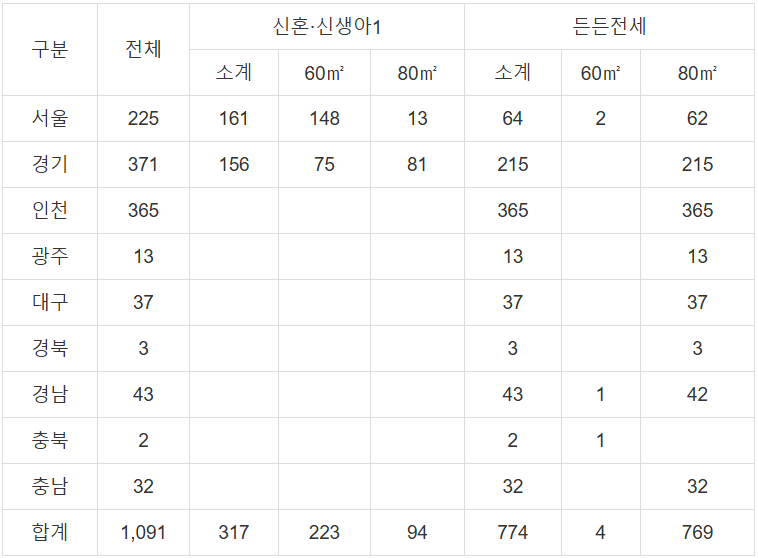 * 2024년 10월 31일부터 1091호 입주자 모집…신혼·신생아 월세형 317호, 든든전세 774호