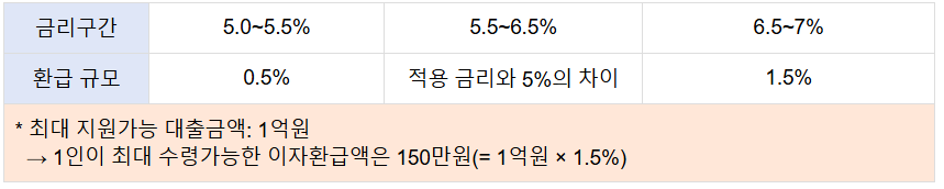 ✅ 지원(환급) 금액 : 대출잔액(최대 1억원) × 해당 금리구간 지원 이자율